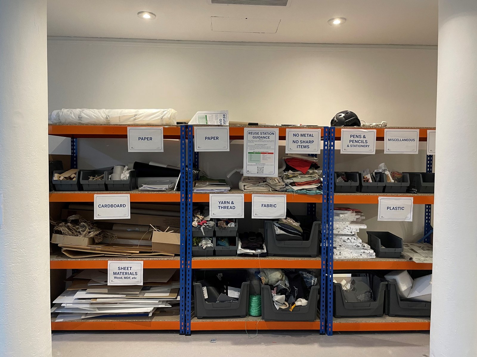 Ad-hoc walk-bys of the Reuse Station have shown that materials are being frequently deposited and collected. The materials seen in the Reuse Station vary hugely; from paper, wood, cardboard, plastics and fabrics to a range of weird and wonderful items which are quickly snapped up by students. This has meant materials have found a second (or sometimes third/fourth!) life and students have been able to save money.